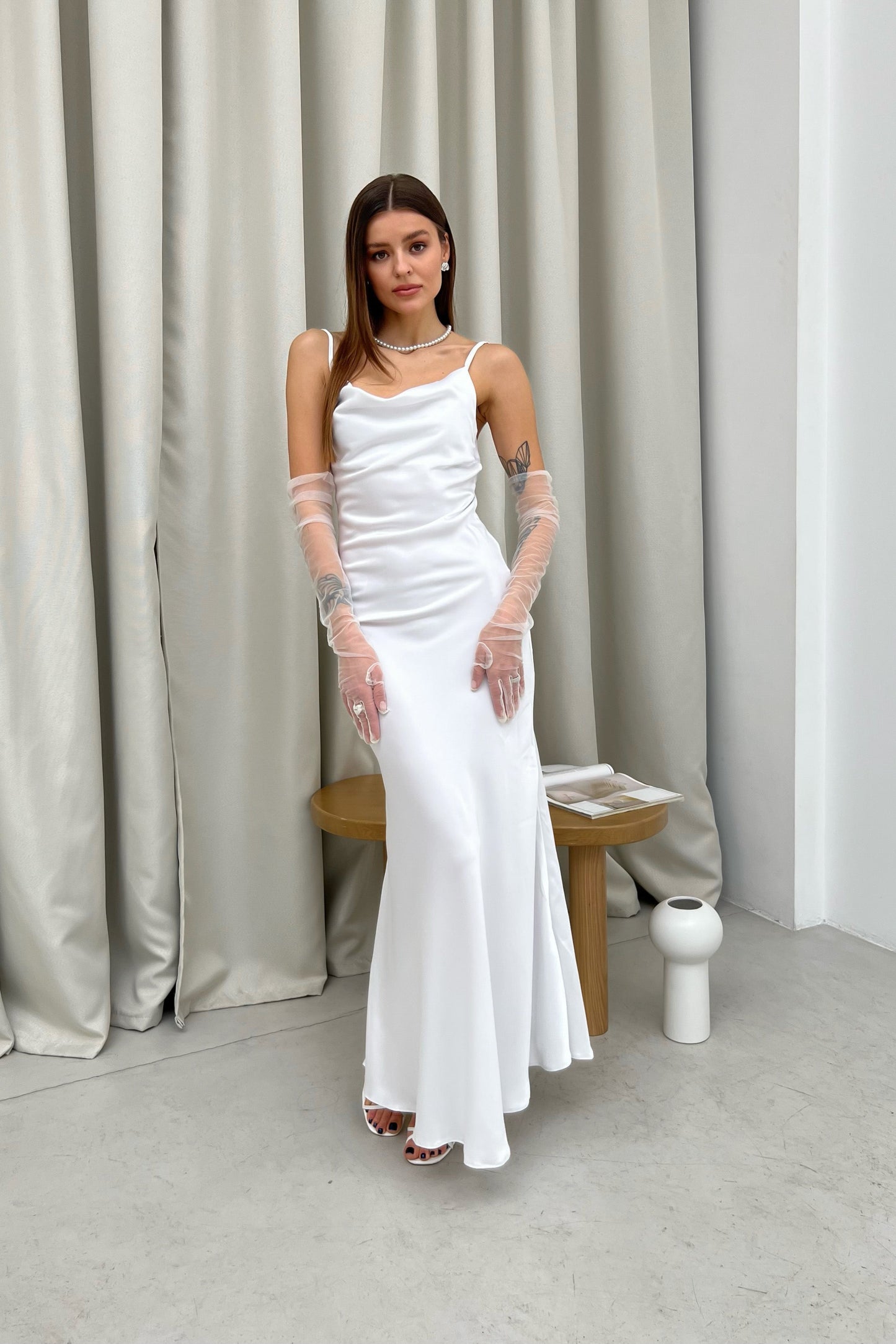 Choose ivory or pure white color spaghetti straps elegant dress for any bridal occasions - rehearsal dinner dress, reception dress or bridal shower dress