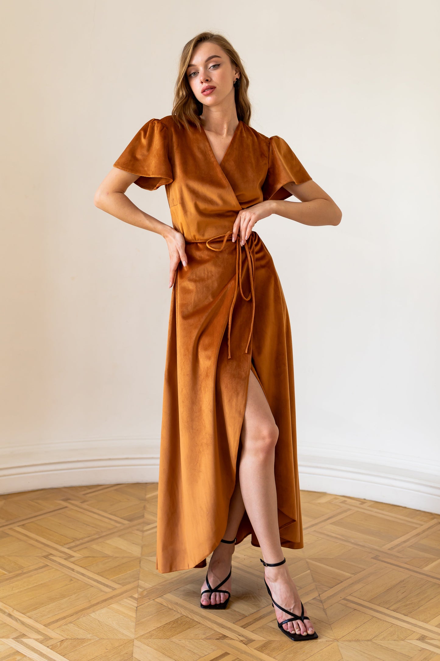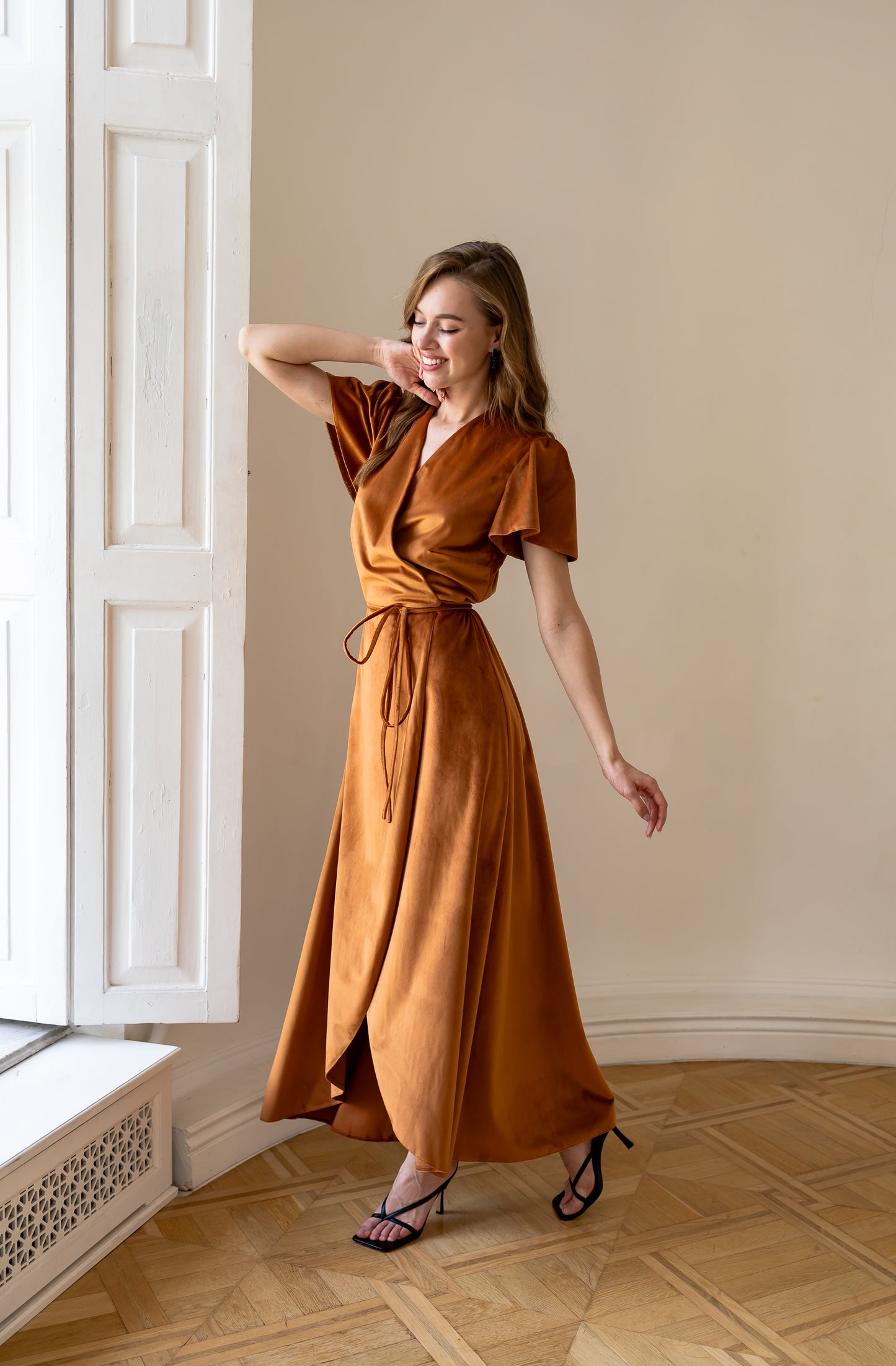 Rust velvet dress for bridesmaids Miranda dress - Rust copper