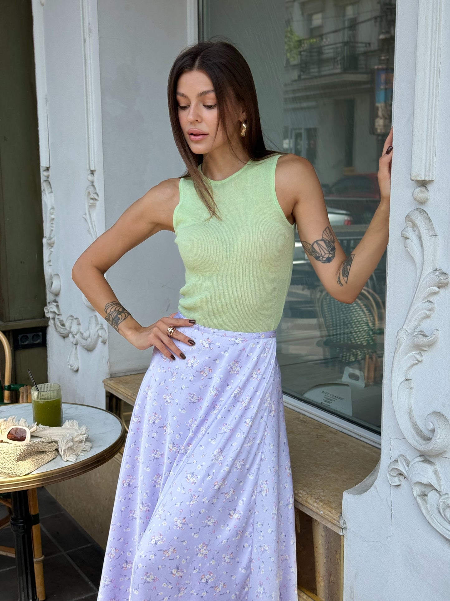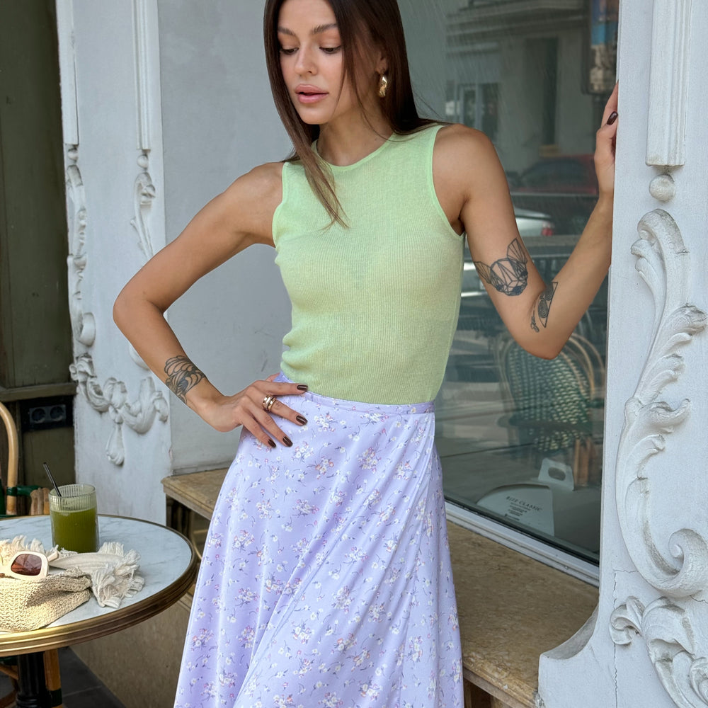 Floral lilac midi skirt