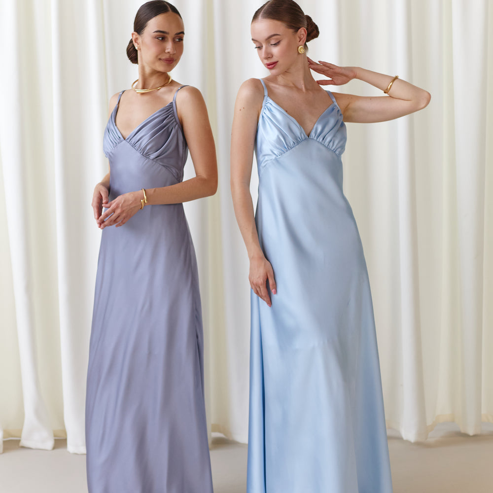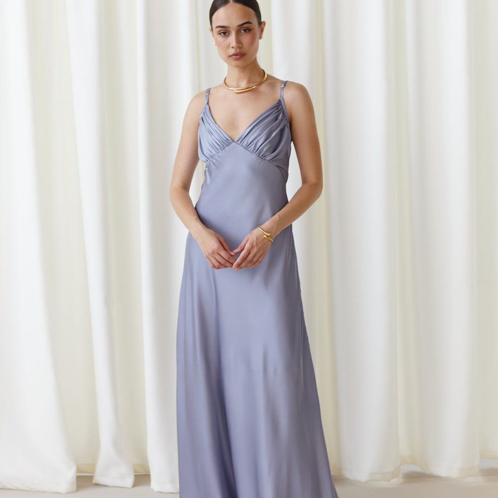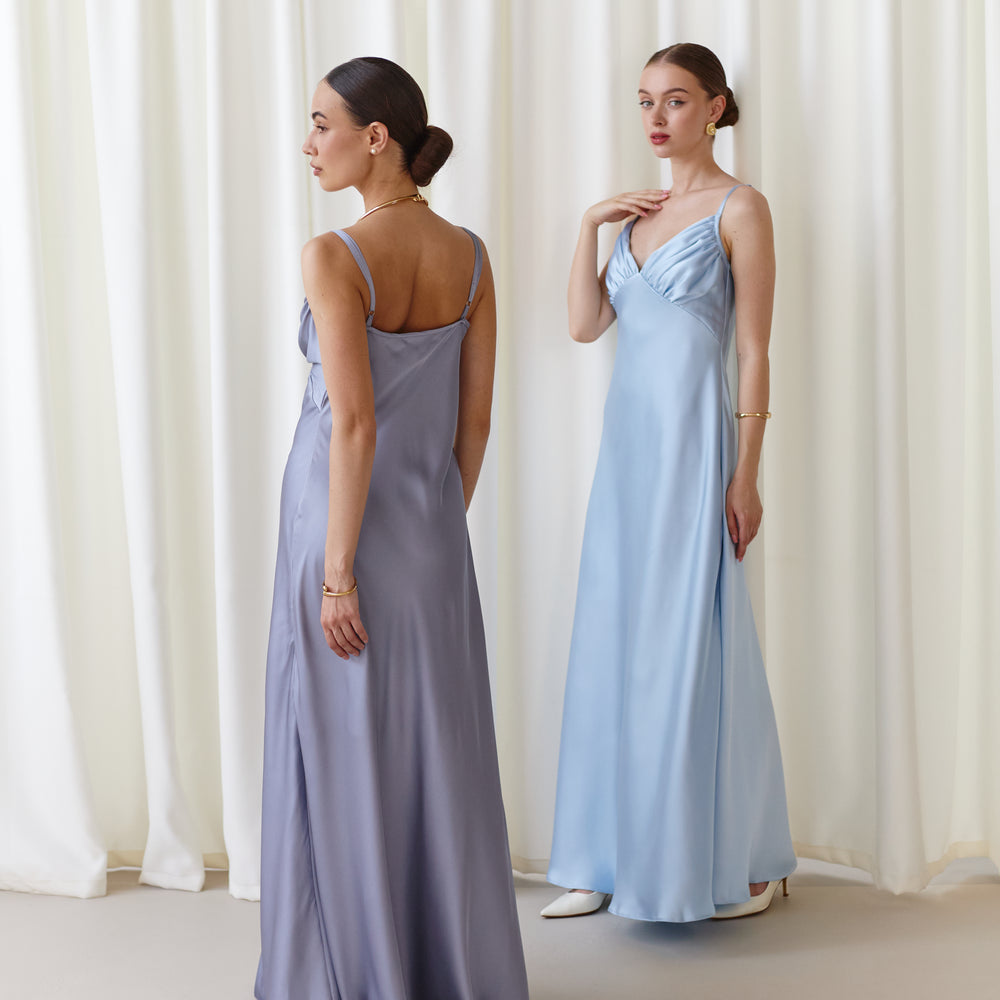 Maxi dress for occasions silver gray