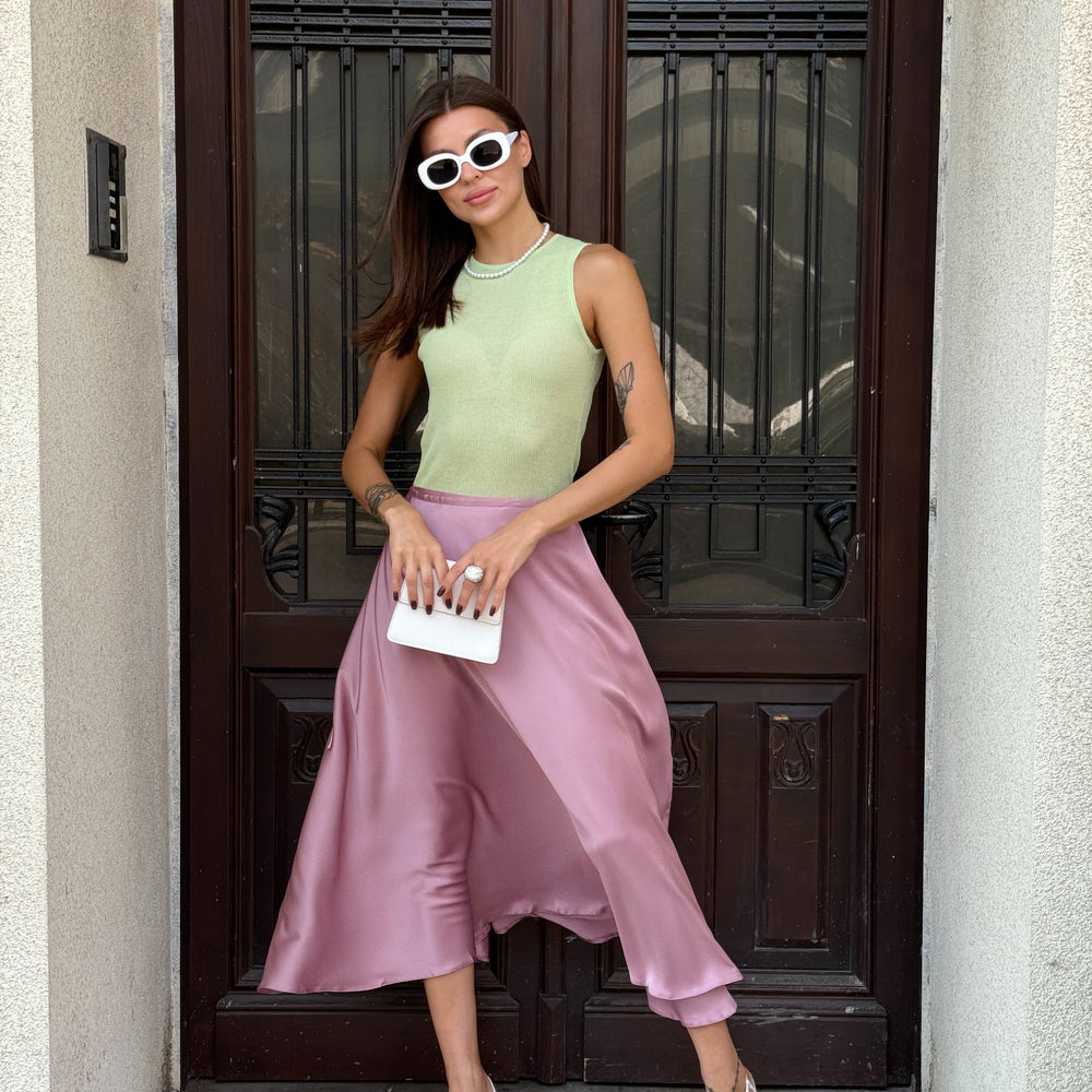 Wrap satin skirt is a simple touch of elegance to your casual wardrobe. Comfortable lightweight skirt for any occasion for summer outfit